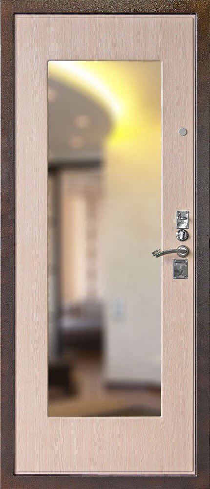 Прочная металлическая Дверь с зеркалом DZ383 по цене от 25 000 руб. под заказ в любой комплектации. Вы можете выбрать материал, замки, цилиндры и многое другое. Производим сами! Быстрая доставка и установка в Норильске.