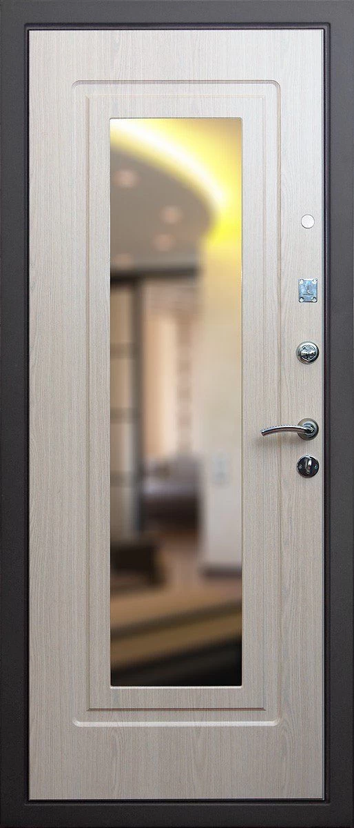Прочная металлическая Дверь с зеркалом DZ385 по цене от 25 000 руб. под заказ в любой комплектации. Вы можете выбрать материал, замки, цилиндры и многое другое. Производим сами! Быстрая доставка и установка в Норильске.