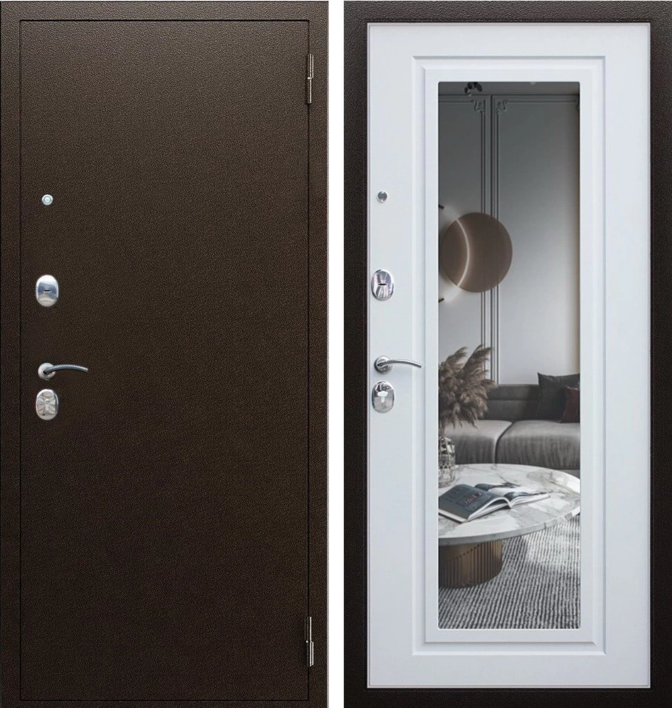 Надежная входная Дверь Комфорт с зеркалом премиум класса по цене 31 500 руб. Большая толщина стали защитит от проникновения в ваш дом, квартиру или коттедж. Используется очень качественная фурнитура: замки, цилиндры, ручки, защелки. Покрытие и отделка двери изготовлено под внимательным контролем производителя. Дверь имеет долгий срок службы и гарантию.