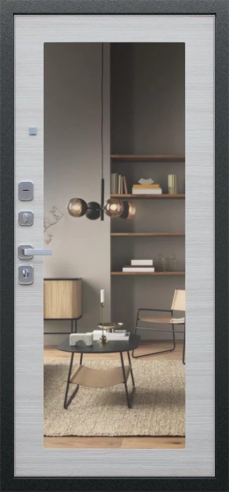 Надежная входная Дверь Next 1 с зеркалом Акация светлая поперечная премиум класса по цене 45 450 руб. Большая толщина стали защитит от проникновения в ваш дом, квартиру или коттедж. Используется очень качественная фурнитура: замки, цилиндры, ручки, защелки. Покрытие и отделка двери изготовлено под внимательным контролем производителя. Дверь имеет долгий срок службы и гарантию.