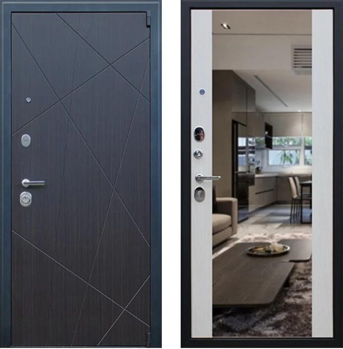 Дизайнерская входная Дверь Вектор с зеркалом класса Люкс с несколькими листами стали, звукоизоляцией и теплоизоляцией. Утепленный короб и полотно защитят от сквозняков и шумов. Модель не только надежная, комфортная, защищенная и высочайшего качества, но и очень красивая! Будет отлично сочетаться с интерьером дома, квартиры или офиса. Сейчас действует выгодное предложение по цене: 52 150 руб.
