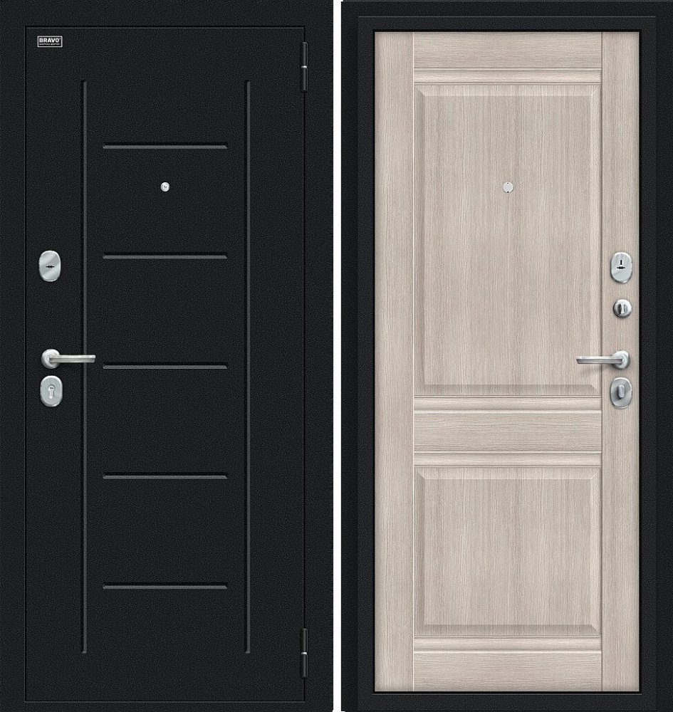 Надежная входная Дверь Браво Некст Kale Букле черное/Cappuccino Veralinga премиум класса по цене 38 670 руб. Большая толщина стали защитит от проникновения в ваш дом, квартиру или коттедж. Используется очень качественная фурнитура: замки, цилиндры, ручки, защелки. Покрытие и отделка двери изготовлено под внимательным контролем производителя. Дверь имеет долгий срок службы и гарантию.