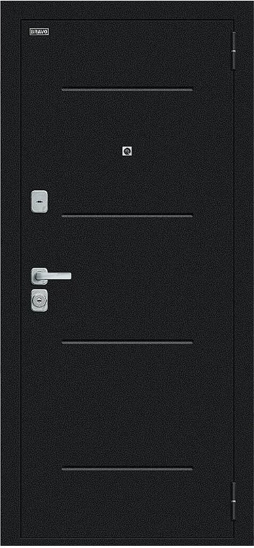 Надежная входная Дверь Браво Техно/BChrome Букле черное/Cappuccino Melinga премиум класса по цене 38 000 руб. Большая толщина стали защитит от проникновения в ваш дом, квартиру или коттедж. Используется очень качественная фурнитура: замки, цилиндры, ручки, защелки. Покрытие и отделка двери изготовлено под внимательным контролем производителя. Дверь имеет долгий срок службы и гарантию.