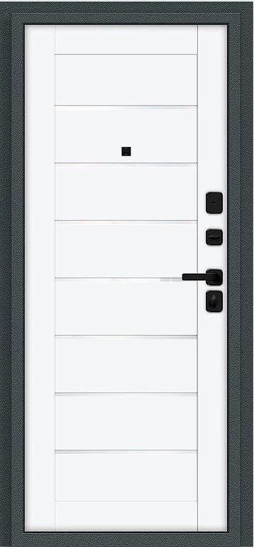 Надежная входная Дверь Браво Техно/SBlack Старк антрацит/White Silk премиум класса по цене 39 150 руб. Большая толщина стали защитит от проникновения в ваш дом, квартиру или коттедж. Используется очень качественная фурнитура: замки, цилиндры, ручки, защелки. Покрытие и отделка двери изготовлено под внимательным контролем производителя. Дверь имеет долгий срок службы и гарантию.