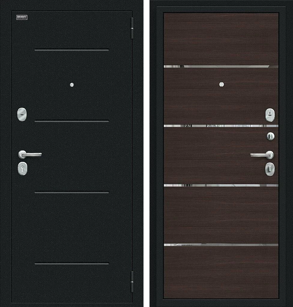 Надежная входная Входная дверь Лайн Букле черное/Wenge Veralinga BR4636 премиум класса по цене 33 548 руб. Большая толщина стали защитит от проникновения в ваш дом, квартиру или коттедж. Используется очень качественная фурнитура: замки, цилиндры, ручки, защелки. Покрытие и отделка двери изготовлено под внимательным контролем производителя. Дверь имеет долгий срок службы и гарантию.