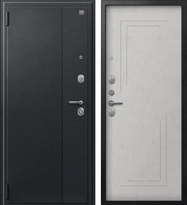 Надежная входная Дверь A-06 черный сатин - бетон светлый премиум класса по цене 32 830 руб. Большая толщина стали защитит от проникновения в ваш дом, квартиру или коттедж. Используется очень качественная фурнитура: замки, цилиндры, ручки, защелки. Покрытие и отделка двери изготовлено под внимательным контролем производителя. Дверь имеет долгий срок службы и гарантию.