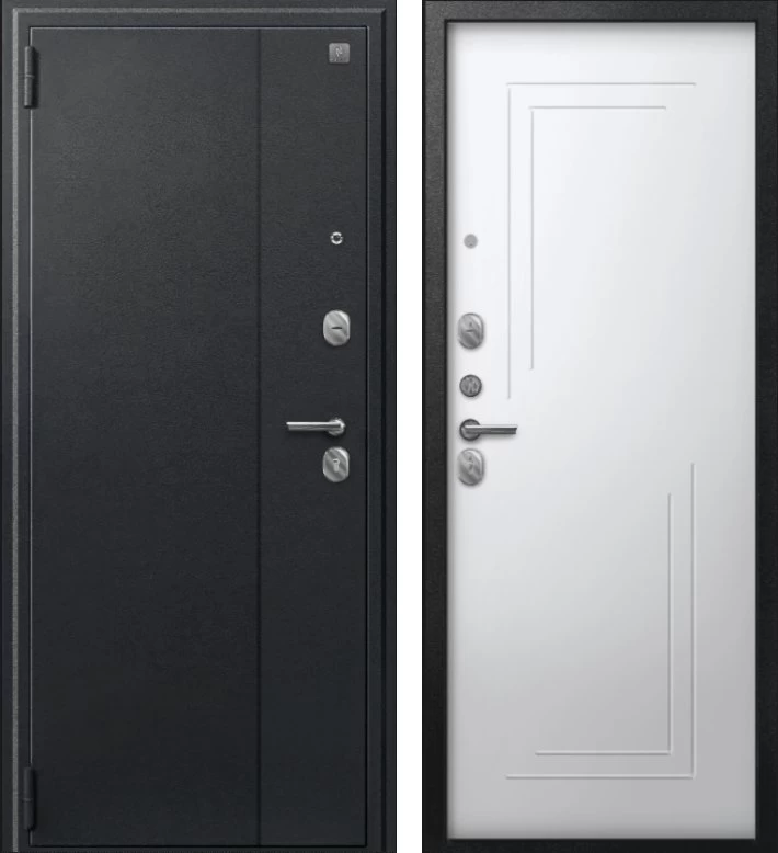 Надежная входная Дверь A-06 черный сатин - кашемир белый премиум класса по цене 32 830 руб. Большая толщина стали защитит от проникновения в ваш дом, квартиру или коттедж. Используется очень качественная фурнитура: замки, цилиндры, ручки, защелки. Покрытие и отделка двери изготовлено под внимательным контролем производителя. Дверь имеет долгий срок службы и гарантию.