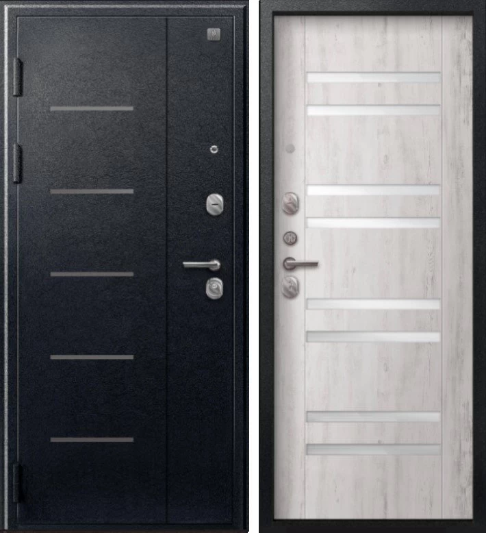 Надежная входная Дверь V-07 Черный муар - Дуб пепельный премиум класса по цене 45 000 руб. Большая толщина стали защитит от проникновения в ваш дом, квартиру или коттедж. Используется очень качественная фурнитура: замки, цилиндры, ручки, защелки. Покрытие и отделка двери изготовлено под внимательным контролем производителя. Дверь имеет долгий срок службы и гарантию.