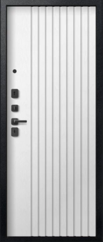 Надежная входная Дверь V-15 Черный муар + Бетон темный - Софт ясень белый премиум класса по цене 46 800 руб. Большая толщина стали защитит от проникновения в ваш дом, квартиру или коттедж. Используется очень качественная фурнитура: замки, цилиндры, ручки, защелки. Покрытие и отделка двери изготовлено под внимательным контролем производителя. Дверь имеет долгий срок службы и гарантию.
